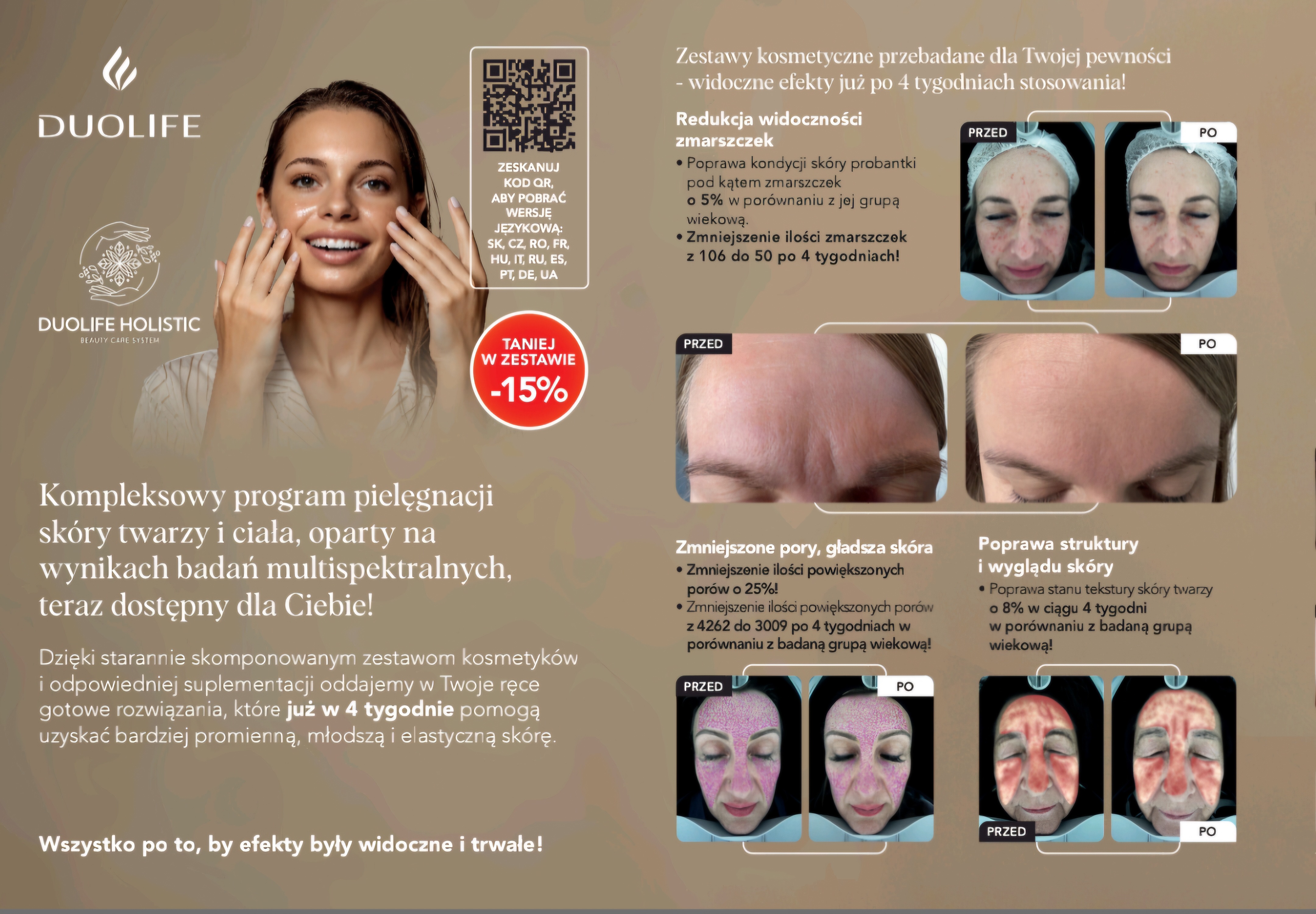Dużą zaletą kosmetyków DuoLife jest ich lekka, przyjemna konsystencja, która szybko się wchłania, nie obciąża skóry i doskonale nadaje się pod makijaż. Dzięki temu pielęgnacja staje się prawdziwą przyjemnością, a efekty widoczne są już po kilku tygodniach regularnego stosowania.