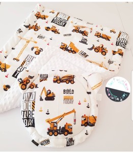 Kocyk do wózka Komplet do gondoli / pościel do kołyski Premium Koparki / poduszka 28x35/ kolory minky
