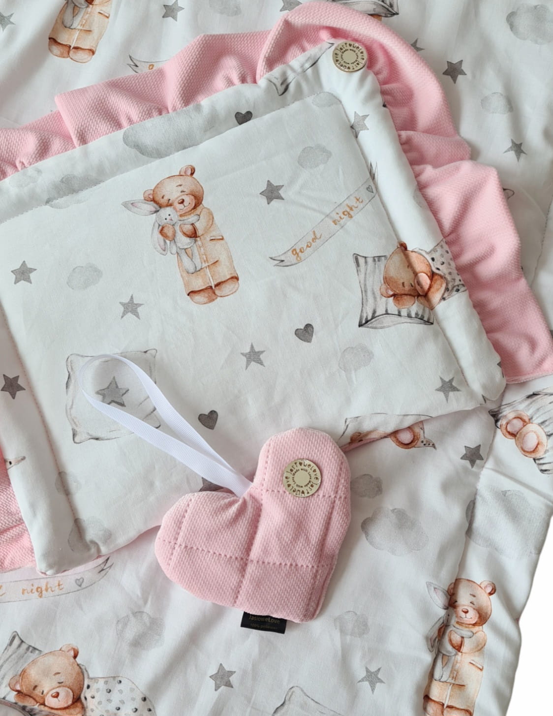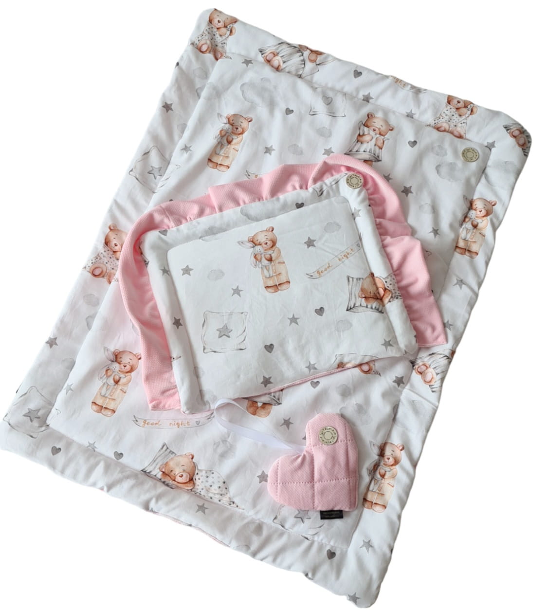 Komplet wykonany z polskiej bawełny premium w połączeniu z bawełną pikowaną:
