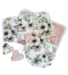 Kocyk do wózka Komplet minky do gondoli / kołyski Kwiaty szare premium 55x75 + poduszka/ kolory minky