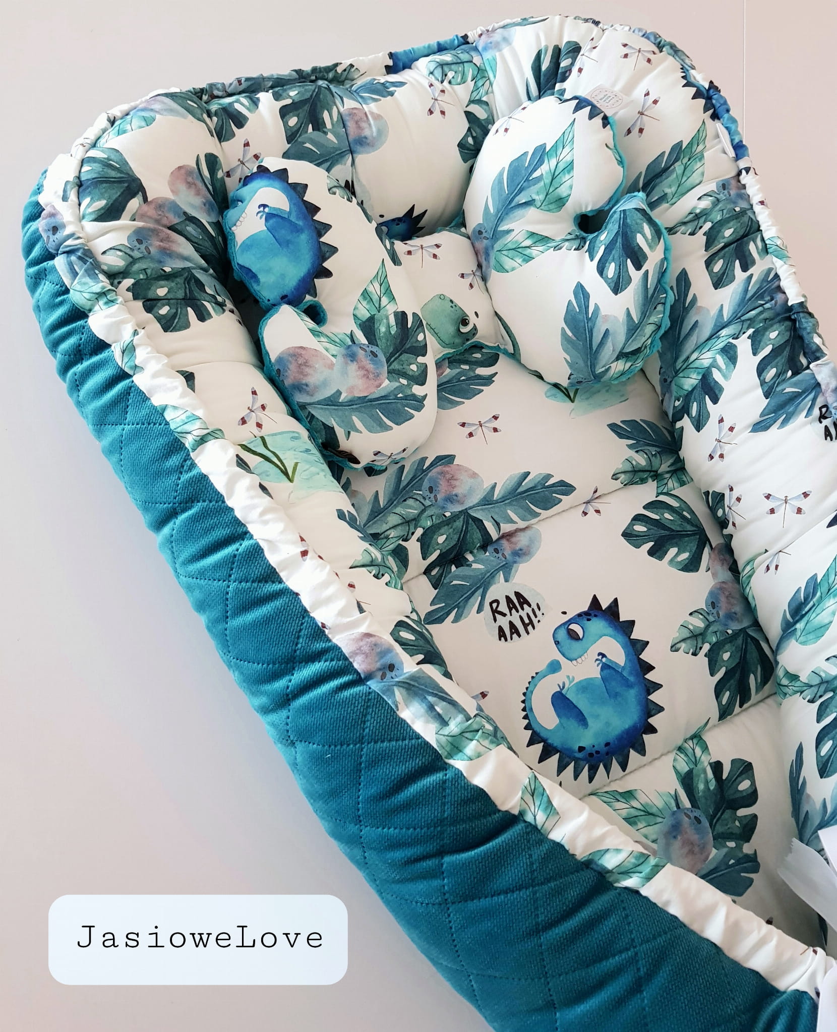 Poduszka antywstrząsowa niemowlęca Motylek Dino/ kolory minky velvet