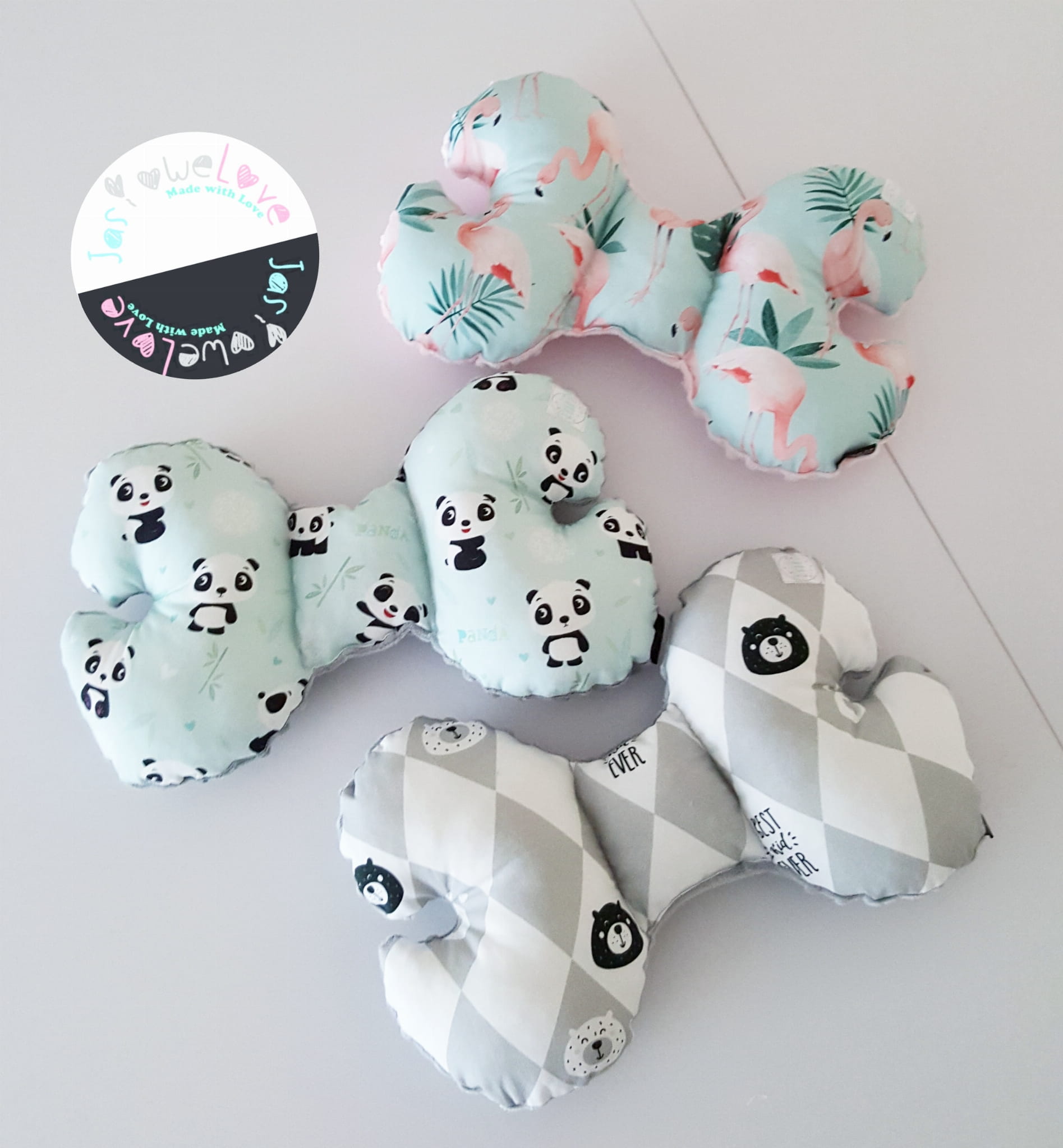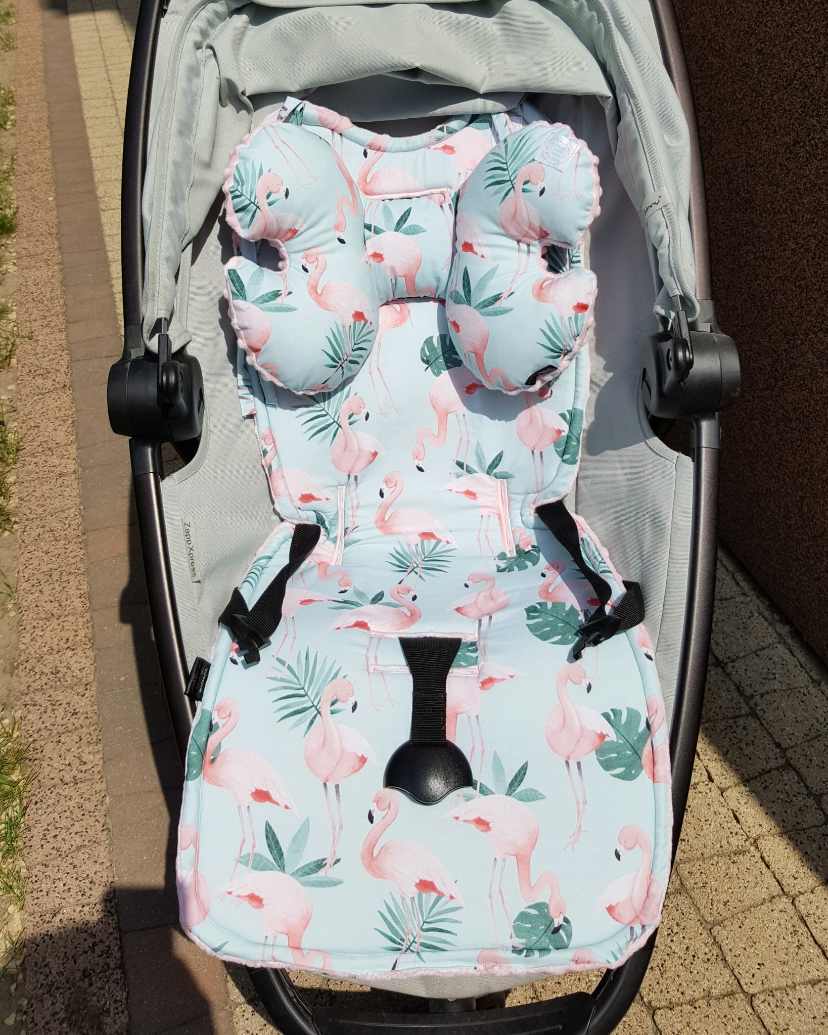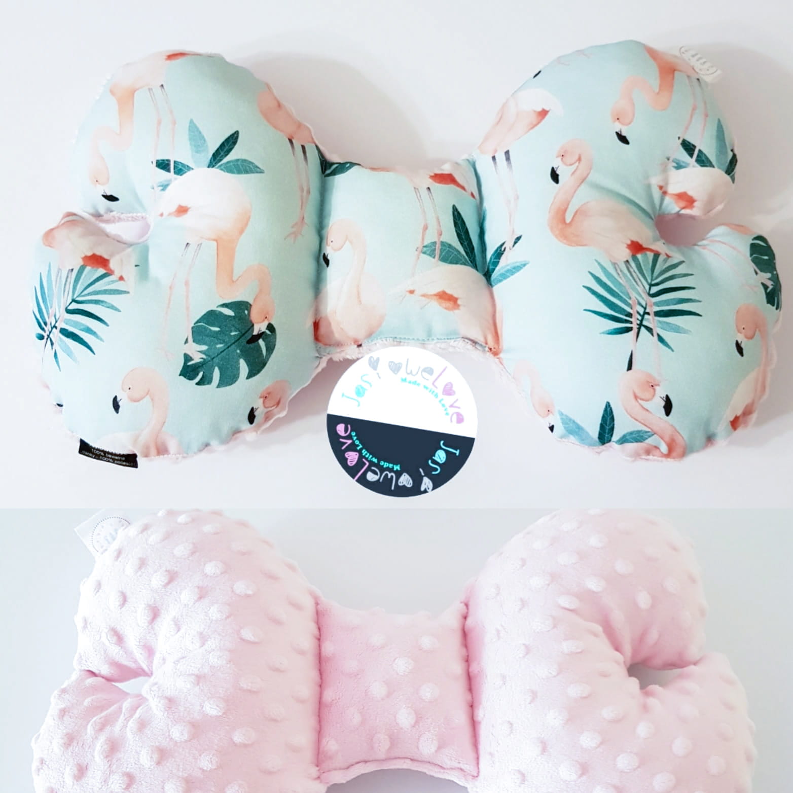 Poduszka antywstrząsowa niemowlęca Motylek Flamingi róż / kolory minky velvet