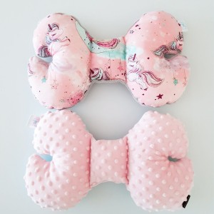 Poduszka antywstrząsowa niemowlęca Motylek Jednorożce na różu / kolory minky velvet