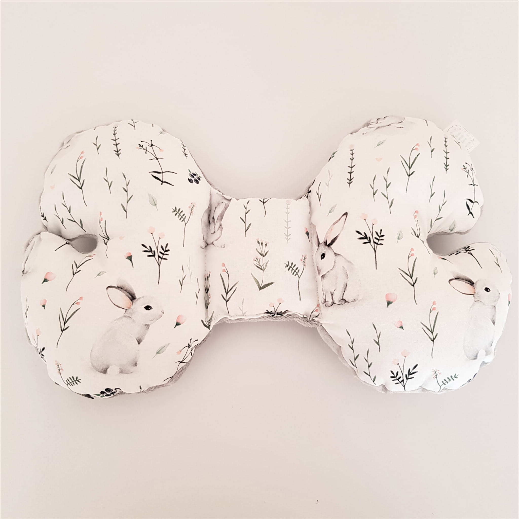 Poduszka antywstrząsowa niemowlęca Motylek Króliczki na łące / kolory minky velvet