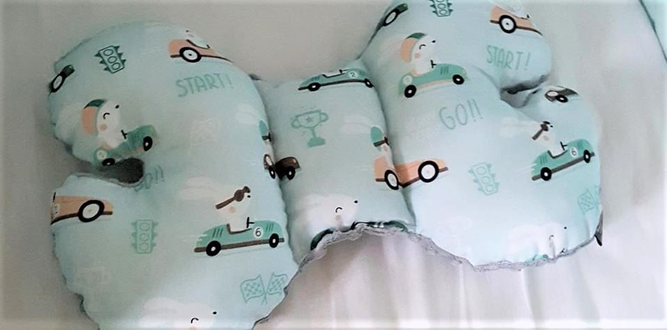Poduszka antywstrząsowa niemowlęca Motylek Króliki w wyścigówce /kolory minky velvet