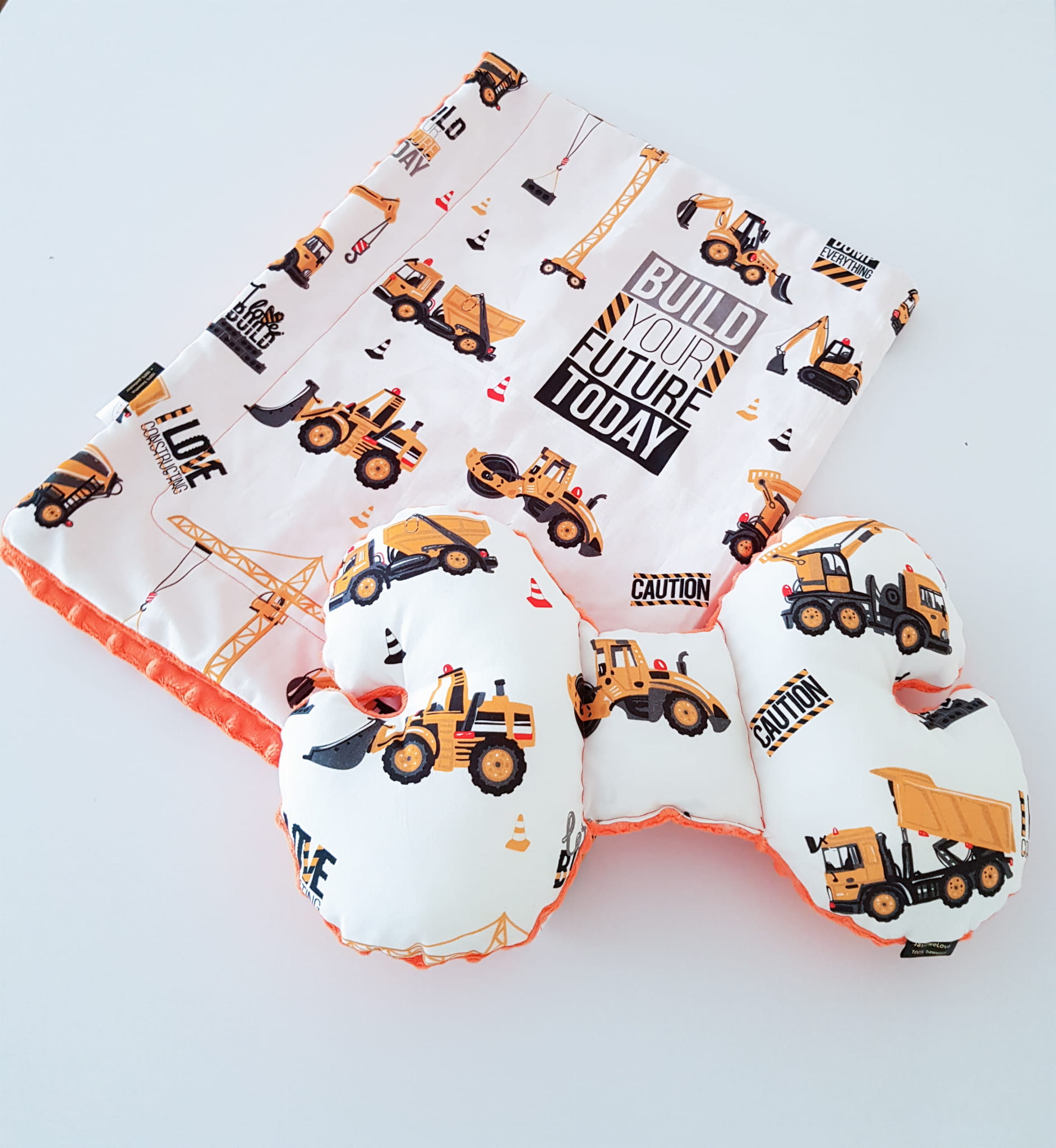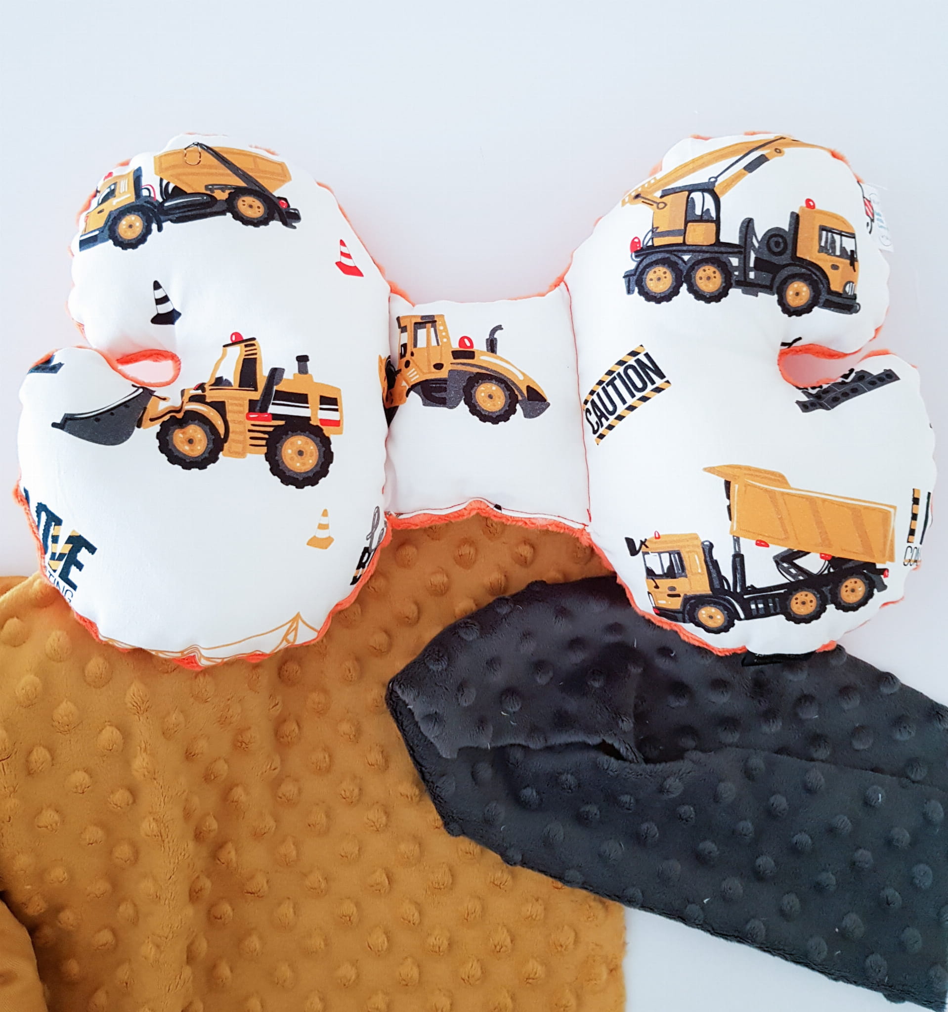 Poduszka antywstrząsowa niemowlęca motylek Koparki Maszyny budowlane/ kolory minky velvet