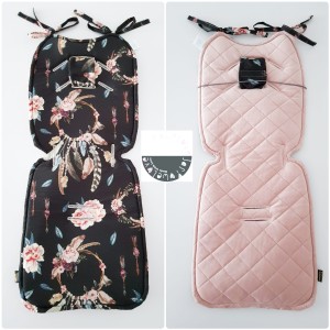 Wkładka do spacerówki uniwersalna Boho czarna Premium / velvet jasny brudny róż