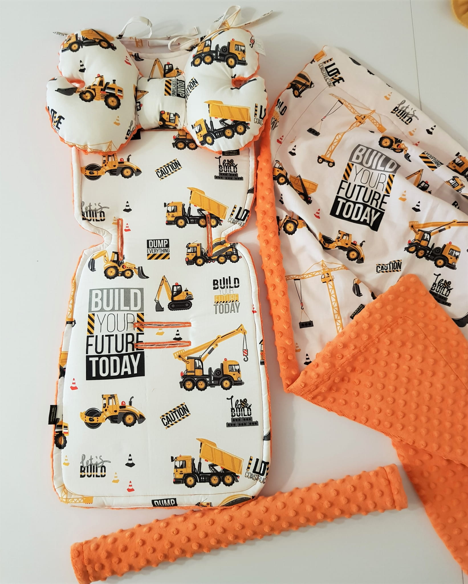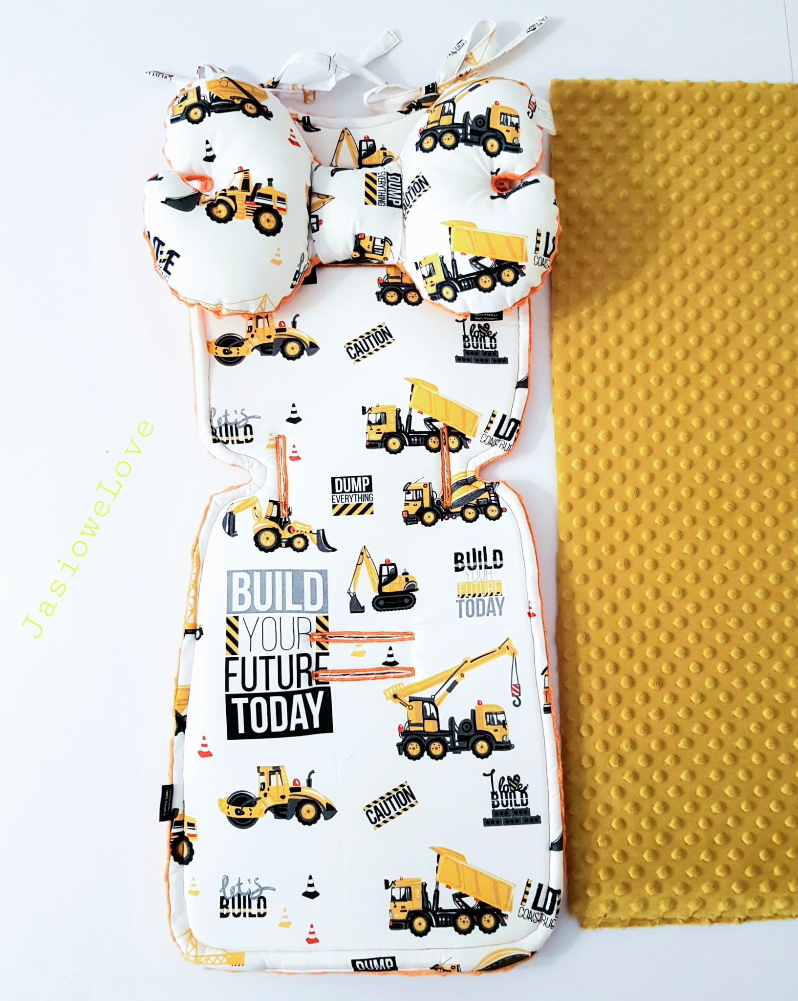 Wkładka do spacerówki uniwersalna Koparki Maszyny Budowlane Premium/ minky kolory