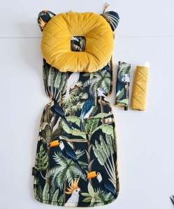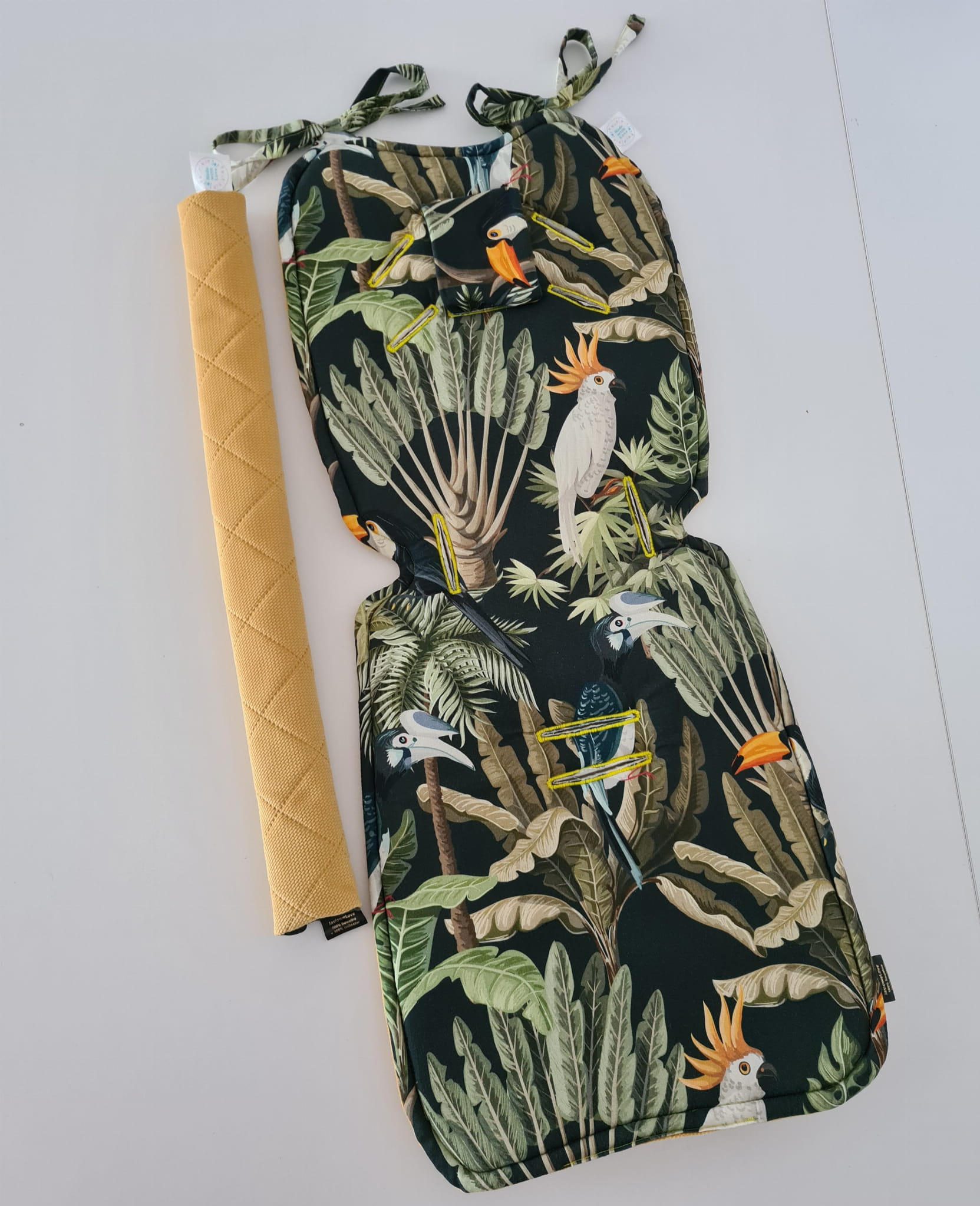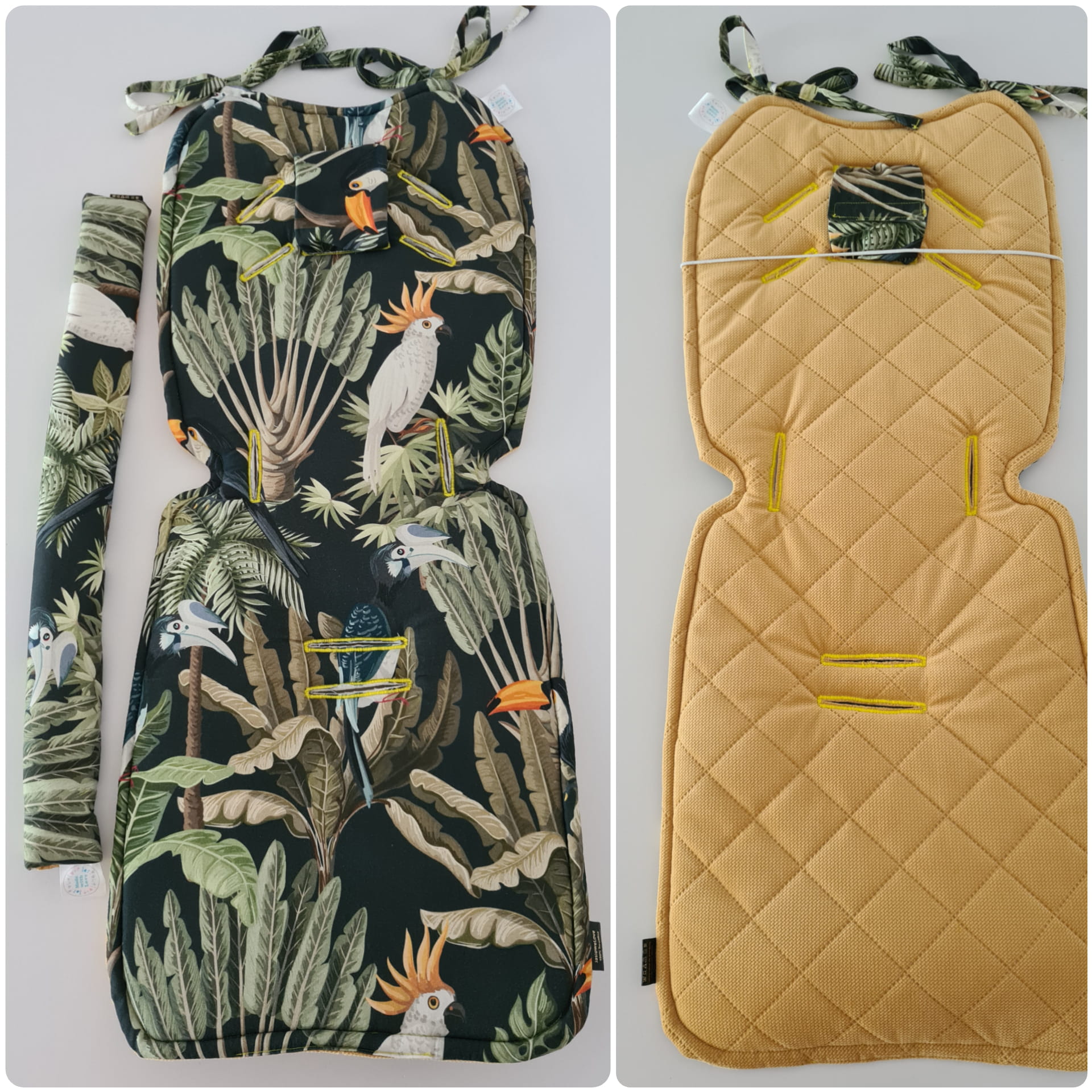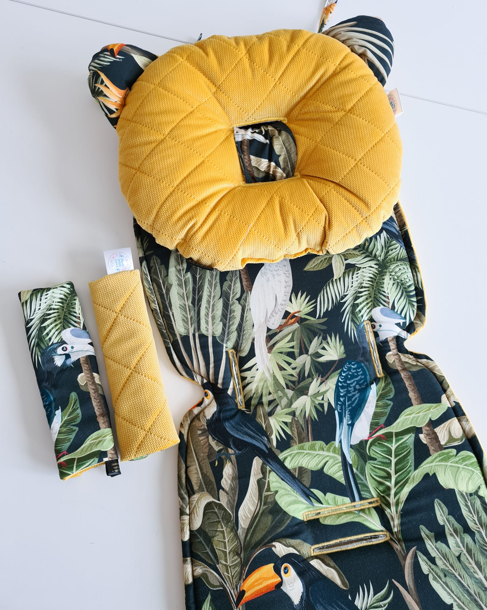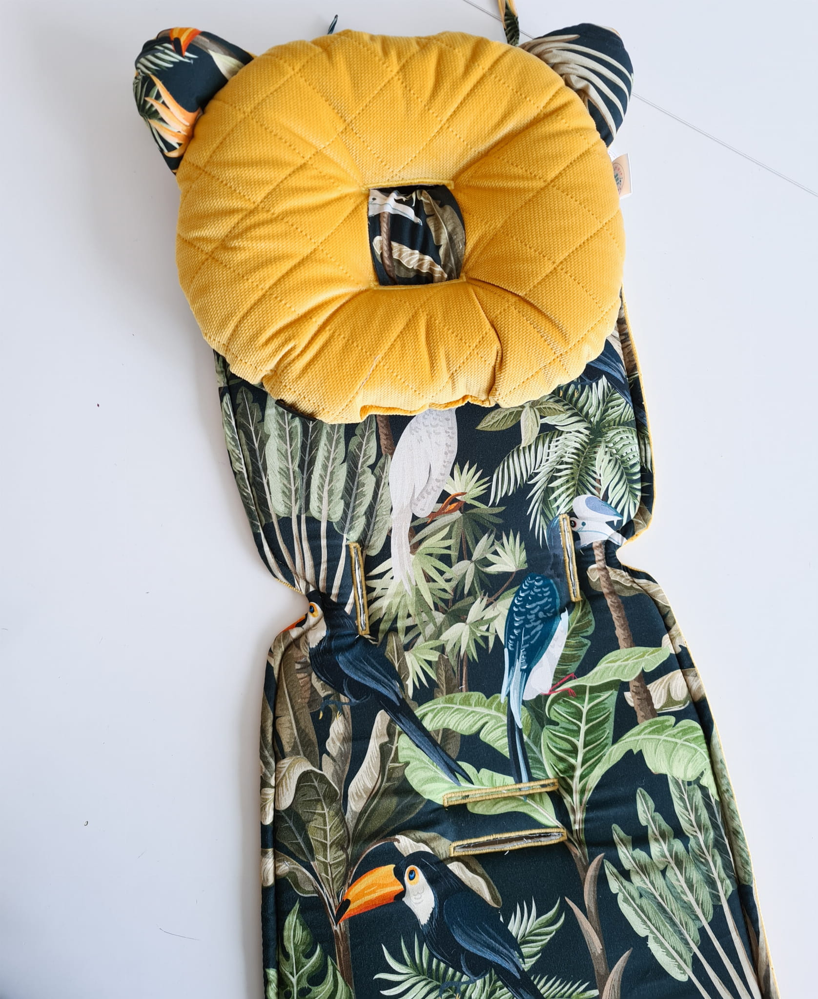 Wkładka do spacerówki uniwersalna Ptaki Jungle Premium / velvet musztarda