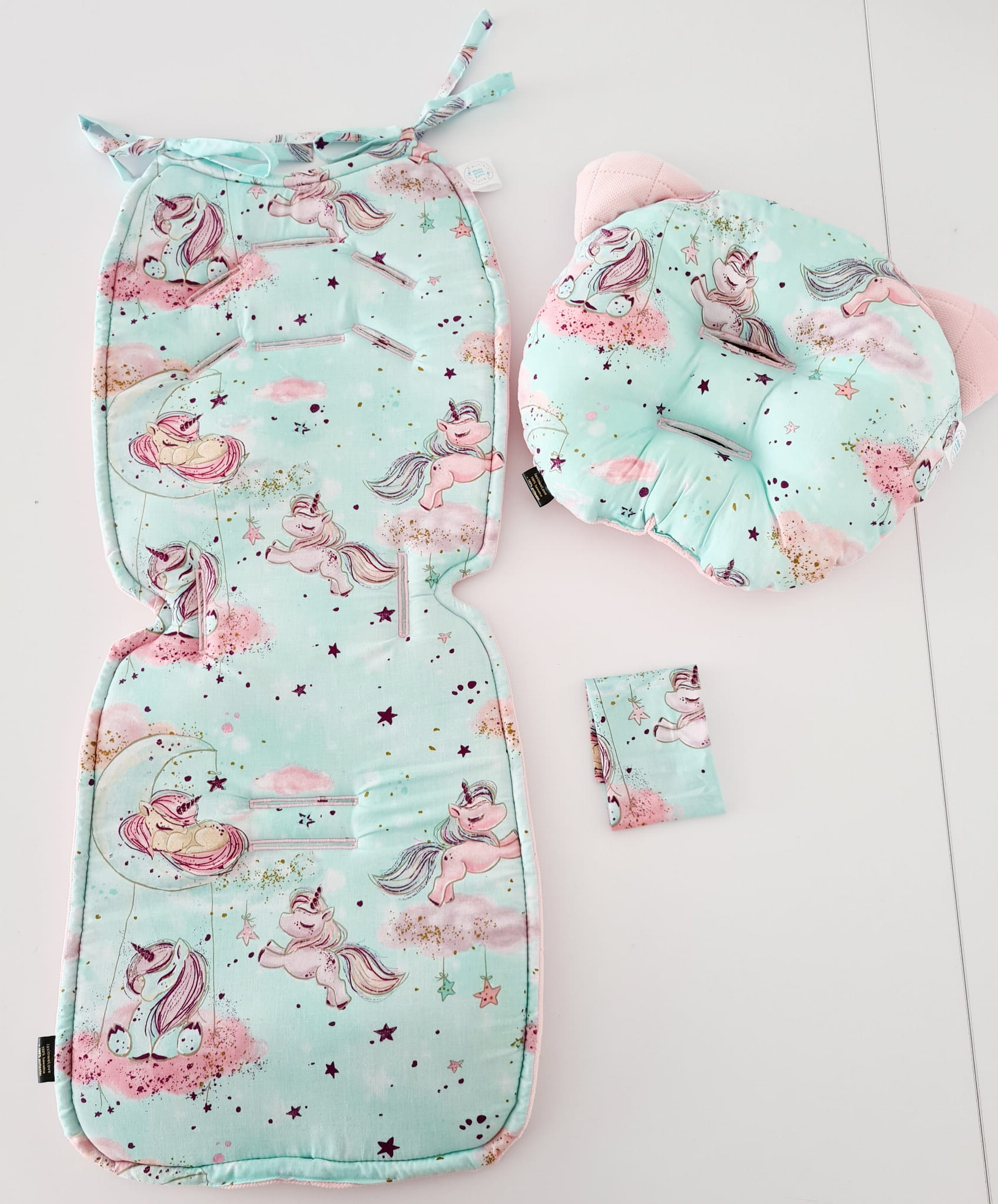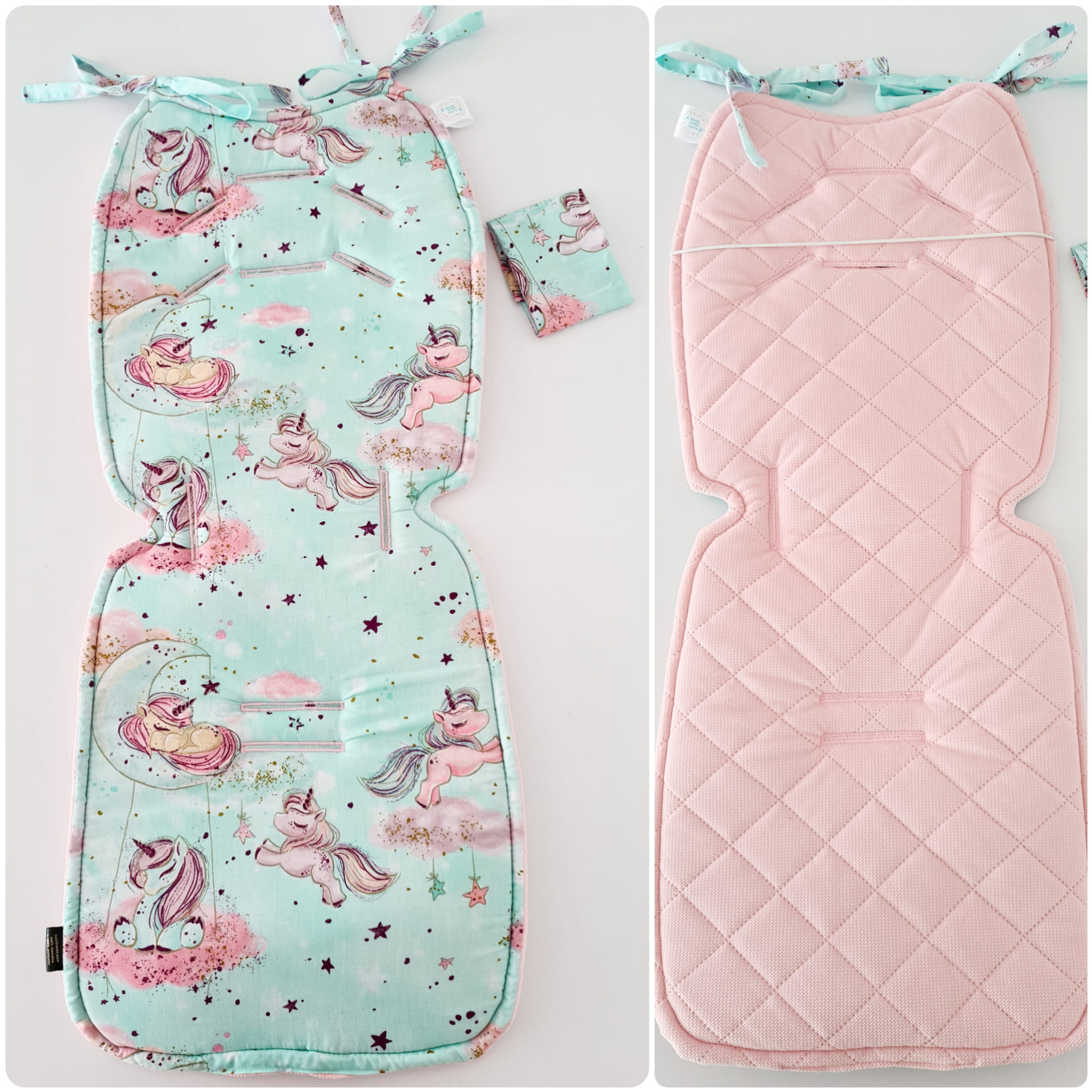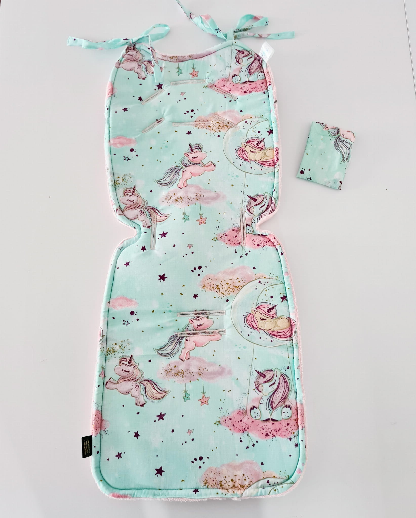 Wkładka do spacerówki uniwersalna Velvet Jednorożce mięta / velvet kolory