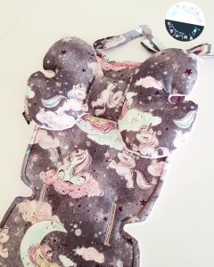Wkładka do spacerówki uniwersalna Velvet Jednorożce szary, mięta / velvet kolory